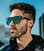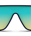 Dueling tones and finishes define the progressive style of 'Night City.' These flat top sunglasses are glossy on their interior and matte on their exterior, and the colorway is characterized by slate and champagne hues. A polarized aqua lens with a rainbow effect is the exclamation point on a bold yet sophisticated look. //
