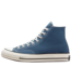 Featuring a high-top silhouette with a blend of polyester and canvas in the upper, the premium sneaker is joined by classic Chuck 70 details such as the premium cotton laces, winged tongue stitching, and varnished egret foxing with a vintage license plate Read more..