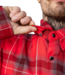- Men’s red, gray, black, and white plaid patterned flannel shirt