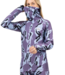 Be extra toasty in our purple printed sports base layer that combines streetfashion and maxed out functionality. The extended back and the integrated soft and fleece lined gaiter neckwarmer cut higher in the back to easily tuck it under the helmet or beanie for extra warmth, protects you on cold winter days trhough every weather. Stay comfortable through cold mountain days, outdoor adventures, or even a calm moment in the yoga studio. Flatlock seams prevent chafing, and the integrated thumb loops keep sleeves in place through any activity.
