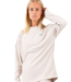 MultiFUNctional white longsleeved base layer with a slightly oversized fit, extended back and integrated thumb loops. Developed without a neckwarmer to replace as many garments as possible when you are packing whether it's summer or winter, for snowboarding, skiing, yoga, working out or exploring new countries that's coming up.