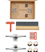 Contains Slant trucks, a full sheet of griptape, wheels, bearings, deck hardware, and a T-tool for assembly.