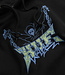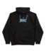 HUF Zine Hoodie in Black. Made from a cotton-polyester blend, this regular fitting HUF hoodie is designed with a drawstring adjustable hood and ribbed cuffs. Finished in a shade of black with a woven elastic hem, a kangaroo front pocket, embroidered left side detailing and with a satin applique chest graphic.