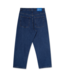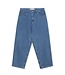 Low-waisted baggy jeans with tapered legs. Made from 100% mid blue cotton denim with a heavyweight 435 gsm feel. Features a YKK zipper, custom YKK button, and embroidered detail on the change pocket. Finished with a woven label on the waist. Read more..