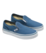 Slip-on sneakers are designed for comfort and accessibility. Who knew they could be so undeniably stylish, too? Vans’ Slip-On sneakers take the game to another level. The sleek navy finish takes center stage, allowing the supportive padded collars, elastic side accents, and rubber waffle outsoles to march under the radar. These navy Slip-On sneakers are the shoes your kid won't want to take off, as much for the style as the comfort. First introduced as Vans #98 in 1979, the Kids Classic Slip-On shines bright in this navy finish.