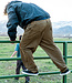 - Above back right pocket and at lower left leg